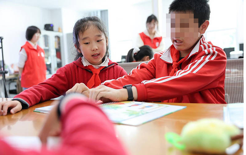 盲健儿童共读同一段内容。