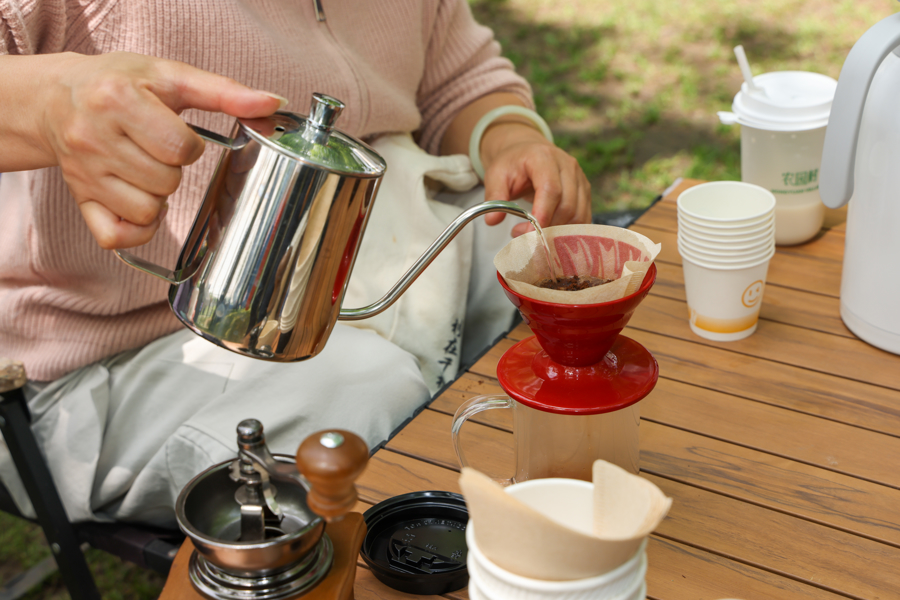 赛场旁,第七届上海湾区·滬之源咖啡手冲大赛同步进行,该赛事已成为山阳田园的文化名片。本次大赛共吸引百人参与,包括20组亲子家庭、10组CP搭档组合,相较于以往本届手冲大赛更注重趣味性,让咖啡竞技走出专业圈层,成为亲子互动、情侣默契比拼的温馨平台。