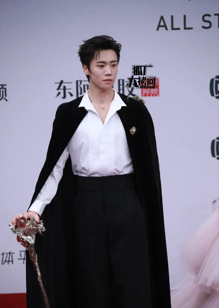 还有几位,要么像吴添豪,颧骨高耸、两颊凹陷,活像一颗“干瘪的芒果”,配上皱巴巴的塑料感西装,更显头大身小;要么像丑沐,标志性的气质没出来,反而被一件皮大衣压得圆肩驼背,脸也肿得大小眼愈发明显。这哪是来走红毯的,换身黑西装,简直可以直接去当保安了。